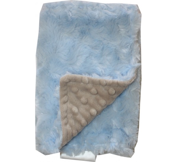This generously-sized bib is the perfect size for messes and can even be used as a security snuggly. It is made from a luxurious mocha minky dot on one side and a baby blue rosebud swirl on the other side. It is fully reversible and machine washable.